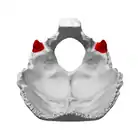 ![]() Occipital bone. Inner surface. Jugular process shown in red. | |
