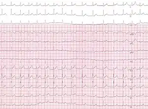 JET is most commonly diagnosed using a 12-lead ECG. The appearance is usually of a tachycardia with rapid, regular ventricular rates of 170-260 beats per minute.[6] The QRS complexes are usually narrow, but may be broad if a bundle branch block is present. There may a 1:1 relationship between atria and ventricular activity with a short RP interval, or atrioventricular dissociation with slower atrial than ventricular rates if the AV node is unable to conduct from the ventricles to the atria.[7]
