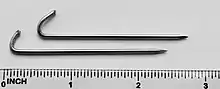 Kirschner wires or K-wires or pins are sterilized, sharpened, smooth stainless steel pins. Introduced in 1909 by Martin Kirschner, the wires are now widely used in orthopedics and other types of medical and veterinary surgery. They come in different sizes and are used to hold bone fragments together (pin fixation) or to provide an anchor for skeletal traction. The pins are often driven into the bone through the skin (percutaneous pin fixation) using a power or hand drill. They also form part of the Ilizarov apparatus.