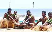 Kava is used for medicinal, religious, political, cultural, and social purposes throughout the Pacific. These cultures have a great respect for the plant and place a high importance on it. In Fiji, for example, a formal yaqona (kava) ceremony will often accompany important social, political, or religious functions, usually involving a ritual presentation of the bundled roots as a sevusevu (gift), and drinking of the yaqona itself.[53][54] Due to the importance of kava in religious rituals and the seemingly (from the Western point of view) unhygienic preparation method, its consumption was discouraged or even banned by Christian missionaries.[7] A spoonerism of "coffee time", "keep it warm" and Australian "good ol' cuppa", can be as "Kava time", "good old kava", "keep it fine!".