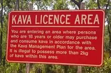 A sign showing a "Kava licence area" at Yirrkala, in the Northern Territory of Australia
