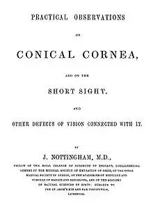 - Nottingham J. Practical observations on conical cornea: and on the short sight, and other defects of vision connected with it. London: J. Churchill, 1854.