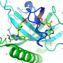 - Karthikeyan, S; Zhou, Q; Osterman, AL; Zhang, H (Nov 4, 2003). "Ligand binding-induced conformational changes in riboflavin kinase: structural basis for the ordered mechanism". Biochemistry. 42 (43): 12532–8. doi:10.1021/bi035450t. PMID 14580199.