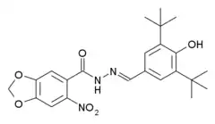 - Duarte CD, Tributino JL, Lacerda DI, Martins MV, Alexandre-Moreira MS, Dutra F, et al. (March 2007). "Synthesis, pharmacological evaluation and electrochemical studies of novel 6-nitro-3,4-methylenedioxyphenyl-N-acylhydrazone derivatives: Discovery of LASSBio-881, a new ligand of cannabinoid receptors". Bioorganic & Medicinal Chemistry. 15 (6): 2421–33. doi:10.1016/j.bmc.2007.01.013. PMID 17275312.