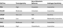To generate a bone metastatic subline, C4-2 cells were orthotopically injected into castrated male mice. These cells formed large primary tumors of the prostate, lymph nodes, as well as osseus tumors. Isolation of these osseus tumors resulted in the C4-2B subline. C4-2B cells were positive for PSA and cytokeratin 8, confirming their prostatic origin. Most importantly, immunohistochemical staining of the C4-2B tumors were positive for osteoblast activity suggesting the induction of osteoblastic tumor formation mirroring the progression of human PCa.[2]