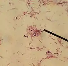 Lactobacillus paracasei is a gram-positive, facultatively heterofermentative, non-spore forming microorganism.[8] The cells of L. paracasei are typically rod shaped, with a size range of 2.0μm to 4.0μm in width, and 0.8 to 1.0μm in length.[3] The organism is nonmotile. L. paracasei cells often have square ends, and may exist either in single form or in chains.[3]