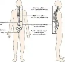 The spinal cord is housed in a bony hollow tube called the vertebral column.[3] The vertebral column is composed of many ring-like bones called vertebra (plural: vertebrae) and it spans from the skull to the sacrum. Each vertebra has a hole in the center called the vertebral foramen through which the spinal cord traverses.[3]