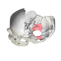 ![]() Occipital bone, inner surface. Lateral parts shown in red. | |