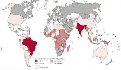 New cases of leprosy in 2016.[91][92]