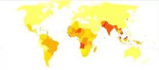 Disability-adjusted life year for leprosy per 100,000 inhabitants in 2004[93]