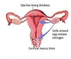 Leukorrhea or (leucorrhoea British English) is a thick, whitish, yellowish or greenish vaginal discharge.[1][2][3] There are many causes of leukorrhea, the usual one being estrogen imbalance. The amount of discharge may increase due to vaginal infection, and it may disappear and reappear from time to time. This discharge can keep occurring for years, in which case it becomes more yellow and strong-smelling. It is usually a non-pathological symptom secondary to inflammatory conditions of the vagina or cervix.[4]