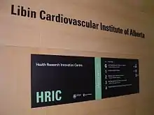 - Health Research Innovation Centre (HRIC)[8] contains a new hub for the Libin Cardiovascular Institute of Alberta's basic scientists. The space, co-located on the same campus as the Foothills Medical Centre, opened in June 2009.[9] Elements of different University of Calgary Institutes occupy the various floors / areas in this building, as to encourage research integration.