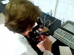 Microscopy is the technical field of using microscopes to view objects and areas of objects that cannot be seen with the naked eye (objects that are not within the resolution range of the normal eye).[1] There are three well-known branches of microscopy: optical, electron, and scanning probe microscopy, along with the emerging field of X-ray microscopy.