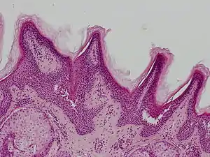 Linear verrucous epidermal nevus is a skin lesion characterized by a verrucous skin-colored, dirty-gray or brown papule.[2]:771[3]:633 Generally, multiple papules present simultaneously, and coalesce to form a serpiginous plaque.[3]:633 When this nevus covers a diffuse or extensive portion of the body's surface area, it may be referred to as a systematized epidermal nevus, when it involved only one-half of the body it is called a nevus unius lateris.[2]:771