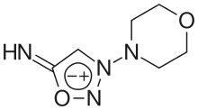 Linsidomine (3-morpholinosydnonimine or SIN-1[1]) is a vasodilator. It is a metabolite of the antianginal drug molsidomine and acts by releasing NO from the endothelial cells nonenzymatically. It also hyperpolarizes the cell membrane through influencing the sodium-potassium pump and thereby rendering it less responsive to adrenergic stimulation. Linsidomine injection at a dose of 1 mg produces usable erection[2] in about 70% of patients and full erection in up to 50% of patients. Linsidomine does not appear to be associated with priapism.