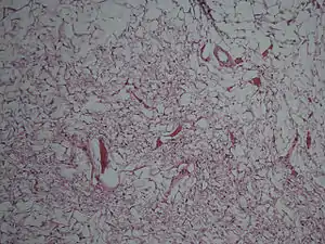 | Lipoblastoma. Note the plexiform vascular pattern and small immature adipocytes. | |