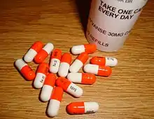 Pharmaceutical lisdexamfetamine dimesylate is contraindicated in patients with hypersensitivity to amphetamine products or any of the formulation's inactive ingredients.[18] It is also contraindicated in patients who have used a monoamine oxidase inhibitor (MAOI) within the last 14 days.[18][57] Amphetamine products are contraindicated by the United States Food and Drug Administration (USFDA) in people with a history of drug abuse, heart disease, or severe agitation or anxiety, or in those currently experiencing arteriosclerosis, glaucoma, hyperthyroidism, or severe hypertension.[58] The USFDA advises anyone with bipolar disorder, depression, elevated blood pressure, liver or kidney problems, mania, psychosis, Raynaud's phenomenon, seizures, thyroid problems, tics, or Tourette syndrome to monitor their symptoms while taking amphetamine.[58] Amphetamine is classified in US pregnancy category C.[58] This means that detriments to the fetus have been observed in animal studies and adequate human studies have not been conducted; amphetamine may still be prescribed to pregnant women if the potential benefits outweigh the risks.[59] Amphetamine has also been shown to pass into breast milk, so the USFDA advises mothers to avoid breastfeeding when using it.[58] Due to the potential for stunted growth, the USFDA advises monitoring the height and weight of children and adolescents prescribed amphetamines.[58] Prescribing information approved by the Australian Therapeutic Goods Administration further contraindicates anorexia.[60]