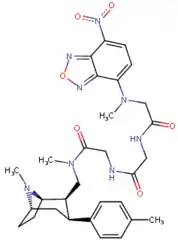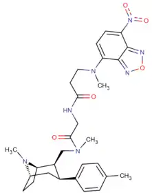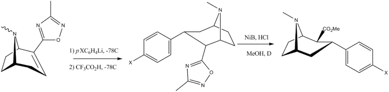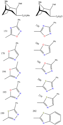 17. Carroll, F. I.; Gray; Abraham; Kuzemko; Lewin; Boja; Kuhar (1993). "3-Aryl-2-(3′-substituted-1′,2′,4'-oxadiazol-5′-yl)tropane analogues of cocaine: affinities at the cocaine binding site at the dopamine, serotonin, and norepinephrine transporters". Journal of Medicinal Chemistry. 36 (20): 2886–2890. doi:10.1021/jm00072a007. PMID 8411004.