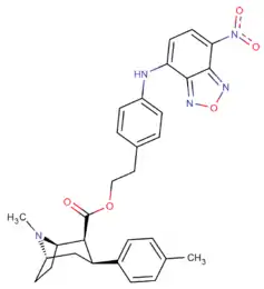 8. Blough, Bruce E.; Keverline, Kathryn I.; Nie, Zhe; Navarro, Hernán; Kuhar, Michael J.; Carroll, F. Ivy (2002). "Synthesis and Transporter Binding Properties of 3β-[4'-(Phenylalkyl, -phenylalkenyl, and -phenylalkynl)phenyl]tropane-2β-carboxylic Acid Methyl Esters: Evidence of a Remote Phenyl Binding Domain on the Dopamine Transporter". Journal of Medicinal Chemistry. 45 (18): 4029–37. doi:10.1021/jm020098n. PMID 12190324.