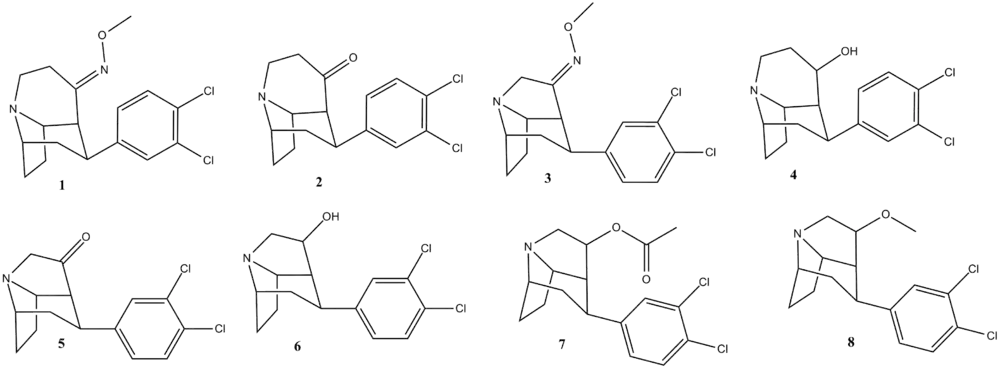 31. Hanna, Mona M. (2007). "Synthesis of some tropane derivatives of anticipated activity on the reuptake of norepinephrine and/or serotonin". Bioorganic. 15 (24): 7765–7772. doi:10.1016/j.bmc.2007.08.055. PMID 17870537.