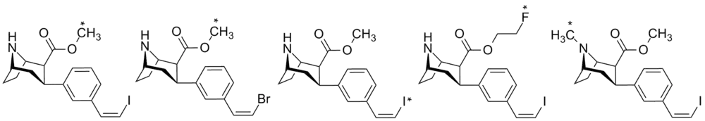 49. Leung, K (2004). "N-4-Fluorobut-2-yn-1-yl-2β-carbo-[11C]methoxy-3β-phenyltropane". PMID 22073420. Cite journal requires |journal= (help)