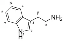 | Tryptamine | H | H | H | H | H | H | H | H | H | H | 3-(2-aminoethyl)indole | ![]() | animals, plants |