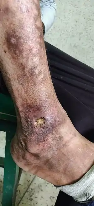 It can be divided into a primary (or idiopathic) form and a secondary form, which has been associated with a number of diseases, including chronic venous hypertension and varicosities.[3]:343[4]