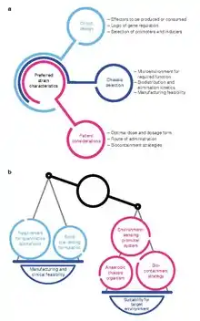 Development of living medicines is an extremely active research area in the fields of synthetic biology and microbiology.[6][7][8][9][10][11][12][13][14] Currently, there is a large focus on: 1) identifying microbes that naturally produce therapeutic effects (for example, probiotic bacteria), and 2) genetically programming organisms to produce therapeutic effects.[15][16]