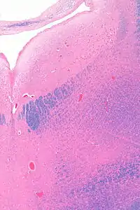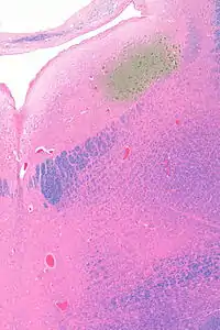 Micrograph showing the locus coeruleus. HE-LFB stain.