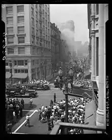 By 1900, the Department had grown to 18 fire stations with 123 full-time paid firefighters and 80 fire horses.[11] The city had also installed 194 fire-alarm boxes allowing civilians to sound the alarm if a fire was spotted. 660 fire hydrants were placed throughout the city, giving firefighters access to a reliable water source.[12] In 1955 Station 78 in Studio City became the first racially integrated station in the department.[13]