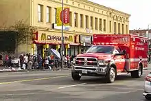 Rescue Ambulances (RAs), often called 'rescues' for short, can be considered either advanced life support (ALS), or basic life support (BLS) units. Ambulances number 1-112 are frontline ALS staffed by 2 firefighter / paramedics, while those in the 200 series are ALS reserves.[17] Ambulances in the 800s & 900s are BLS staffed by 2 firefighter EMTs, with 900-series units assigned to Stations identified numerically over 100.[17]
