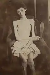 Anorexia nervosa is an eating disorder characterized by food restriction due to the strong desire to remain thin. It is considered a mental health diagnosis where people see themselves as overweight regardless of their weight or appearance.[15] The person does not necessarily exhibit anorexia as a symptom in their quest to restrict food intake.[15]