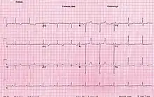• Intermittent QT prolongation, or intermittent prolongation of the QTc (corrected QT interval) on the EKG (electrocardiogram) is noted. The implications of intermittent QTc prolongation predisposes to life-threatening cardiac electrical instability (and this is therefore a more critical condition than constant QTc prolongation). This type of electrical instability puts the person at high risk of torsades de pointes, a specific type of ventricular tachycardia which appears on an EKG (or ECG) as something which looks a bit like a sine wave with a regularly increasing and decreasing amplitude. (Torsades de pointes can cause death, unless the person can be medically or electrically cardioverted and returned to a normal cardiac rhythm.)