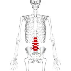 ![]() Position of human lumbar vertebrae (shown in red). It consists of 5 bones, from the top down, L1, L2, L3, L4 and L5. | |