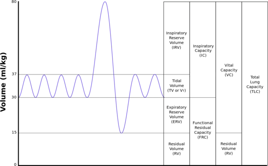 There are four lung volumes and four lung capacities. A lung's capacity consists of two or more lung volumes. The lung volumes are tidal volume (VT), inspiratory reserve volume (IRV), expiratory reserve volume (ERV), and residual volume (RV). The four lung capacities are total lung capacity (TLC), inspiratory capacity (IC), functional residual capacity (FRC) and vital capacity (VC).
