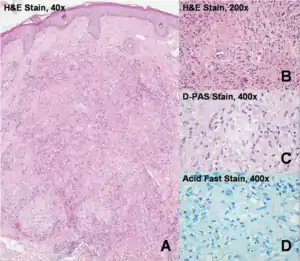 - Wang SH, Tsai TF (2007). "Several Erythematous Papules with a 1.5-cm Sized Nodule Scattering on the Face of an Old Woman". Dermatol Sinica. 25 (2): 175-6.