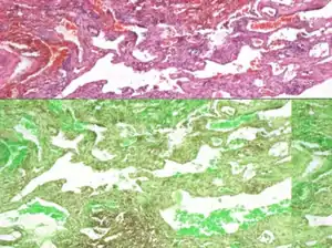 | Lung biopsy showing infiltration of lymphatic tissue. | |