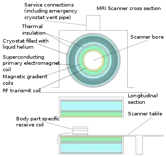 Schematic of construction of a cylindrical superconducting MR scanner