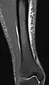 Inversion recovery Short tau inversion recoverySTIRFat suppression by setting an inversion time where the signal of fat is zero.[55] High signal in edema, such as in more severe stress fracture.[56] Shin splints pictured: