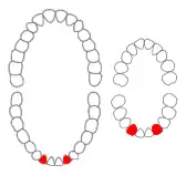 ![]() Mandibular lateral incisors of permanent and primary teeth marked in red. | |