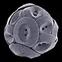 Gromia sphaerica is a large spherical testate amoeba which makes mud trails. Its diameter is up to 3.8 cm.[99]