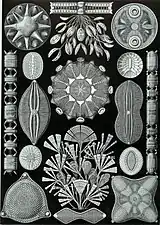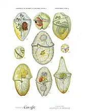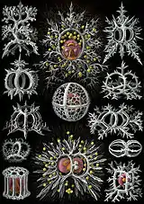 Radiolarian protist as drawn by Haeckel | Foraminiferans, and some marine amoebae, ciliates and flagellates. | |||