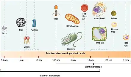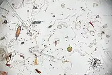 Microorganisms make up about 70% of the marine biomass.[4] A microorganism, or microbe, is a microscopic organism too small to be recognised adequately with the naked eye. In practice, that includes organisms smaller than about 0.1 mm.[12]:13