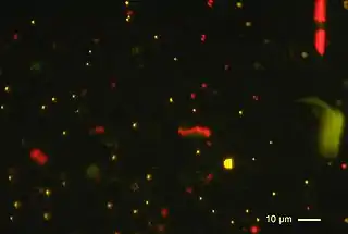 Marine microorganisms are defined by their habitat as microorganisms living in a marine environment, that is, in the saltwater of a sea or ocean or the brackish water of a coastal estuary. A microorganism (or microbe) is any microscopic living organism or virus, that is too small to see with the unaided human eye without magnification. Microorganisms are very diverse. They can be single-celled[1] or multicellular and include bacteria, archaea, viruses and most protozoa, as well as some fungi, algae, and animals, such as rotifers and copepods. Many macroscopic animals and plants have microscopic juvenile stages. Some microbiologists also classify biologically active entities such as viruses and viroids as microorganisms, but others consider these as non-living.[2][3]