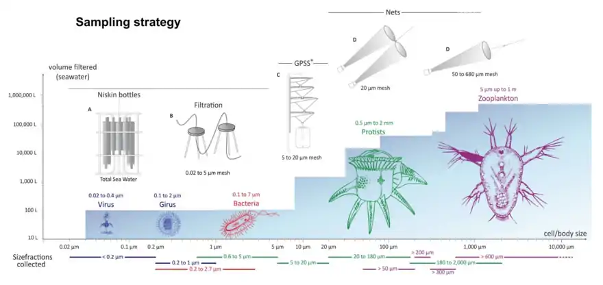 Material was copied from this source, which is available under a Creative Commons Attribution 4.0 International License. - Karsenti, E.; Acinas, S.G.; Bork, P.; Bowler, C.; De Vargas, C.; Raes, J.; Sullivan, M.; Arendt, D.; Benzoni, F.; Claverie, J.M.; Follows, M. (2011). "A holistic approach to marine eco-systems biology". PLOS Biology. 9 (10): e1001177. doi:10.1371/journal.pbio.1001177. PMC 3196472. PMID 22028628.