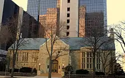 MCASOM has its administrative center and primary location at the Mayo Clinic in Rochester, Minnesota.[7][11] It is the largest medical school campus in the United States, with 11.5 million square feet of medical and research space in a single location.[46] Educational activities are based at the Mitchell Student Center and Guggenheim Building, particularly in the Kendall-Hench lecture hall. Students also attend classes and conduct laboratory exercises in the Stabile Building, which contains a state-of-the-art anatomy laboratory and a Multidisciplinary Simulation Center.[47] The Plummer Building is home to the Mayo Clinic Libraries system—one of the largest medical libraries in the world—which offers students access to around 400,000 bound volumes and 4,800 medical and scientific journal subscriptions.[48] The Gonda Building houses several seminar rooms and the Mayo Clinic Center for Innovation, a facility where students can develop ideas to improve health care alongside staff and entrepreneurs. The adjacent Mayo Building has a number of conference rooms used for small group exercises. Together, the Gonda and Mayo buildings comprise the core outpatient clinical practice facilities in downtown Rochester. The Mayo Clinic Hospital — Rochester provides extensive inpatient learning experiences for medical students with 2,059 licensed beds[49][50] and 115 operating rooms[51] across the Methodist Campus, Saint Marys Campus, and Mayo Eugenio Litta Children's Hospital.[52][53]
