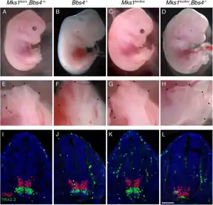 | Embryos with mutation in MKS1KRC, a cause of Meckel syndrome. | |