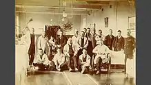 The Royal Navy Medical Assistant, throughout their history, whether as a Loblollyboy, or Sick Berth Rating, has seen action during war and in peace. From assisting the ships surgeons in amputating limbs to nursing the injured sailors and Marines from wars and battles throughout Britain's history, from the 16th century onwards. Most notably they served with distinction during the Napoleonic Wars at sea,[6] the Crimean War, the Boer and other African wars,[7][8][9] the Chinese Boxer Rebellion,[10][11] and in World War I at sea and on the land as part of the Royal Naval Division. Of note during World War I, the Royal Marines also trained their own medics at Crystal Palace, London to form the R.M. Medical Units.[12] Both Sick Berth Staff of the Navy and the Medical Attendants of the Royal Marines served with distinction at the Battle of Jutland,[13] Flanders,[14] Gallipoli,[15] the Western Front,[16] Battle of Heligoland Bight,[17] Zeebrugge Raid,[5] the Mediterranean Expeditionary Force,[18] Siege of Antwerp,[19] the Battle of Dogger Bank,[20] and the British Campaign in the Baltic (Russia) to name a few.