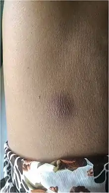 Melioidosis is an infectious disease caused by a Gram-negative bacterium called Burkholderia pseudomallei.[1] Most people infected with B. pseudomallei experience no symptoms, but those who do experience symptoms have signs and symptoms that range from mild, such as fever, skin changes, pneumonia, and abscesses, to severe with inflammation of the brain, inflammation of the joints, and dangerously low blood pressure that causes death.[1] About 10% of people with melioidosis develop symptoms that last longer than two months, termed "chronic melioidosis".[1]