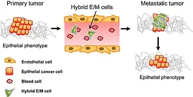 While relatively little is known about the role MET plays in cancer when compared to the extensive studies of EMT in tumor metastasis, MET is believed to participate in the establishment and stabilization of distant metastases by allowing cancerous cells to regain epithelial properties and integrate into distant organs. Between these two states, cells occur in 'intermediate‐state', or so‐called partial EMT.[8]